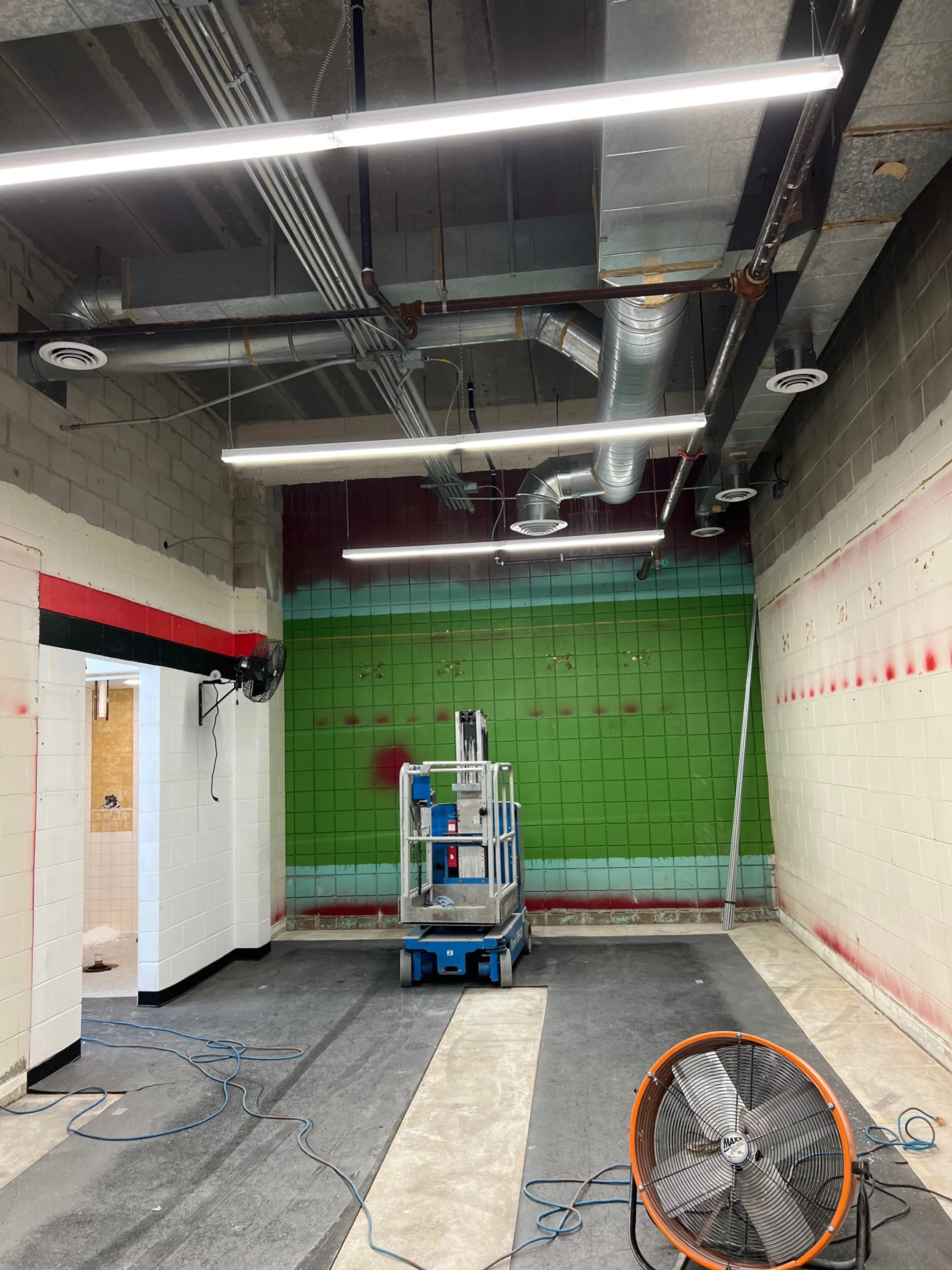 Our locker room demolition and basic repairs are complete with new lighting, airflow diffusers and painting well underway. New locker stalls, flooring and graphics will be coming soon, with several additional components still in need of funding. And the initial phase of the legacy space outside of Rink 1 has been designed with final graphics production and installation awaiting additional fundraising.